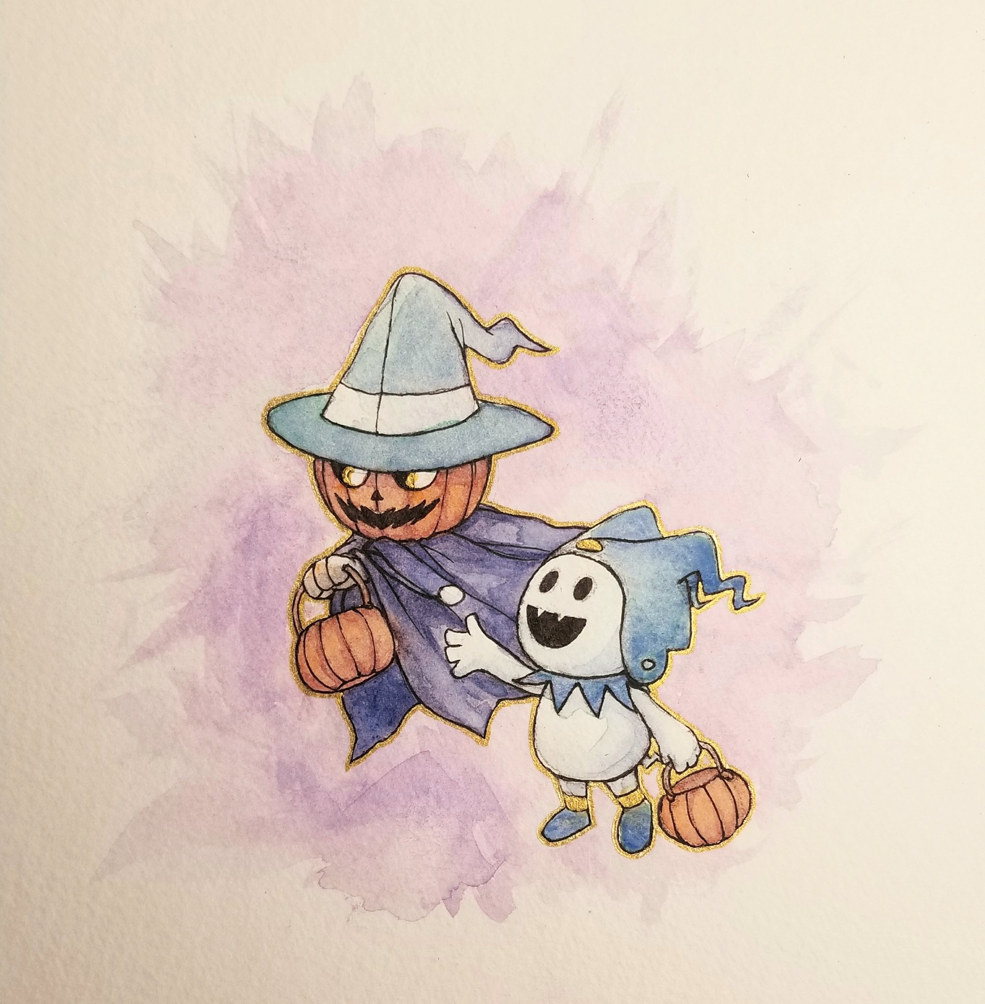 [The second ghost(?) is a a pumpkin head in a cape, carrying a lantern. You might see him: