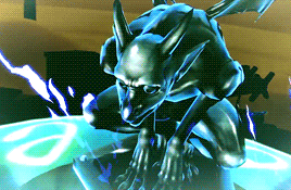 [His gut instincts demand fight or flight so Kirishima does the first thing he can think of: hardening his fists into rock-hard blades he rushes the ufo to give it a hearty swing, almost falling over and off the bridge in the process.]