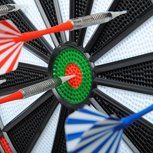 It's a hard throw, one that impales the dart right in the bullseye and makes the faux board clatter against where it's hung on the wall.